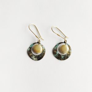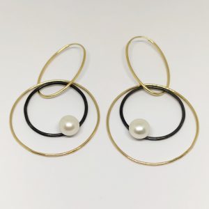 עגיל חישוקים מכסף מושחר, גולדפילד ופנינה