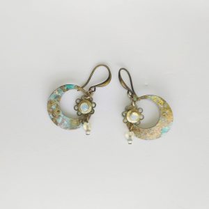 עגילי פרחים מושחרים מעוטרים בחרוזי גולדפילד
