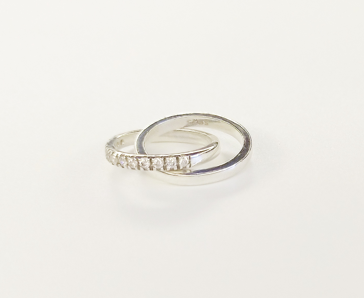 טבעות כסף או גולדפילד משולבות, עם שיבוץ זרקונים.