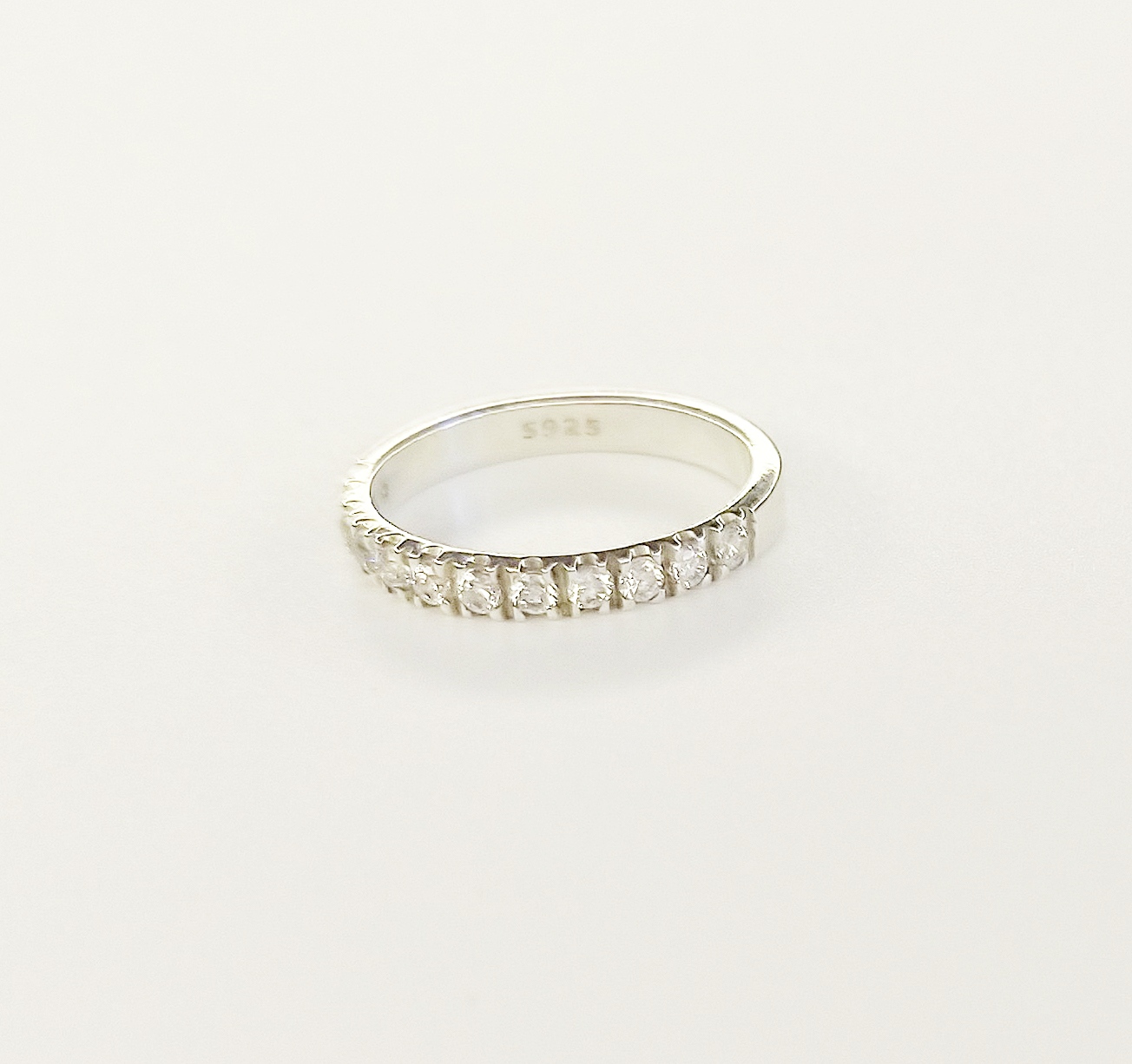טבעת כסף 925 בשיבוץ 12 זרקונים, עבודת יד.