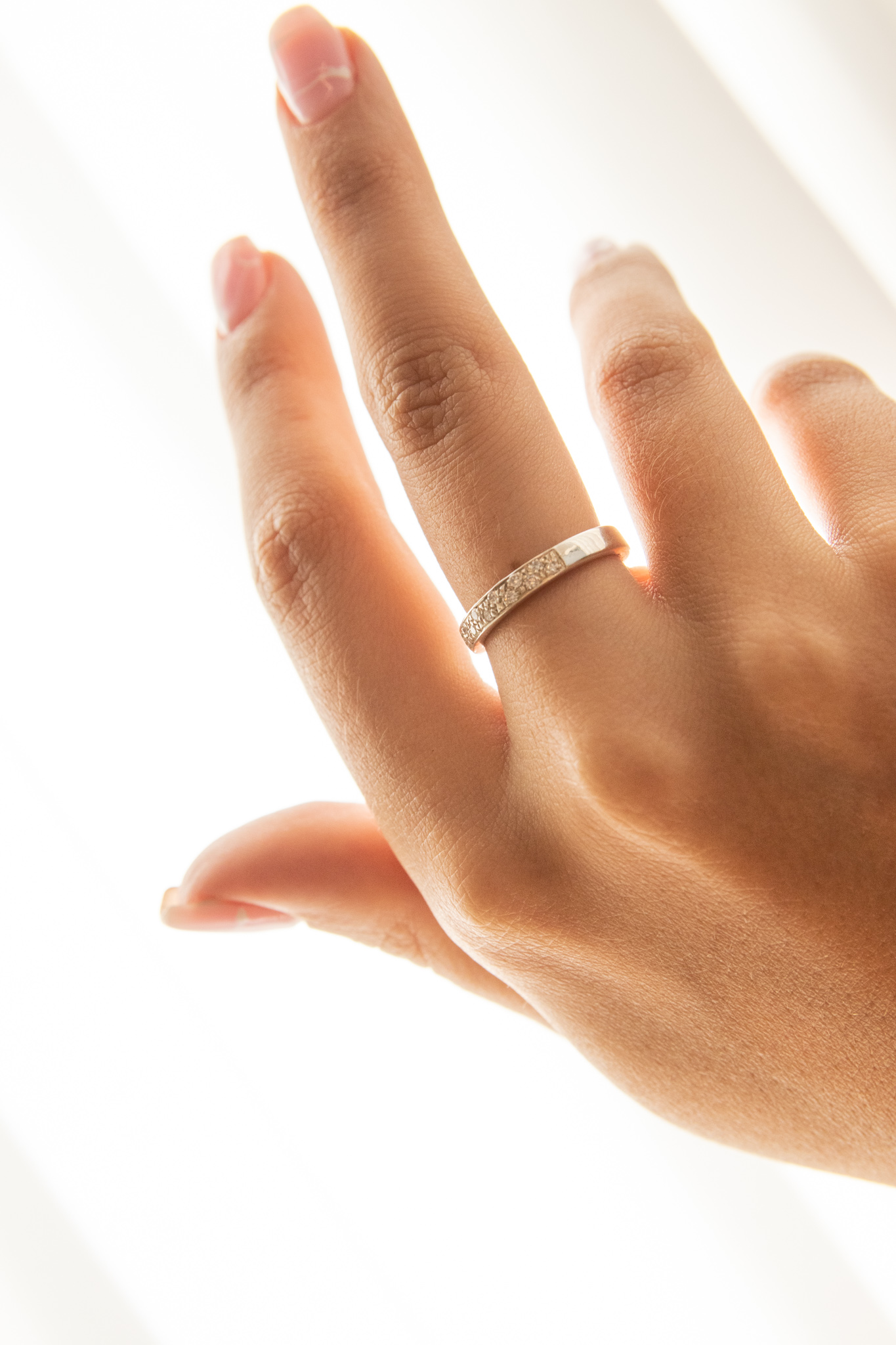 טבעת כסף 925 בשיבוץ 12 יהלומים, עבודת יד.