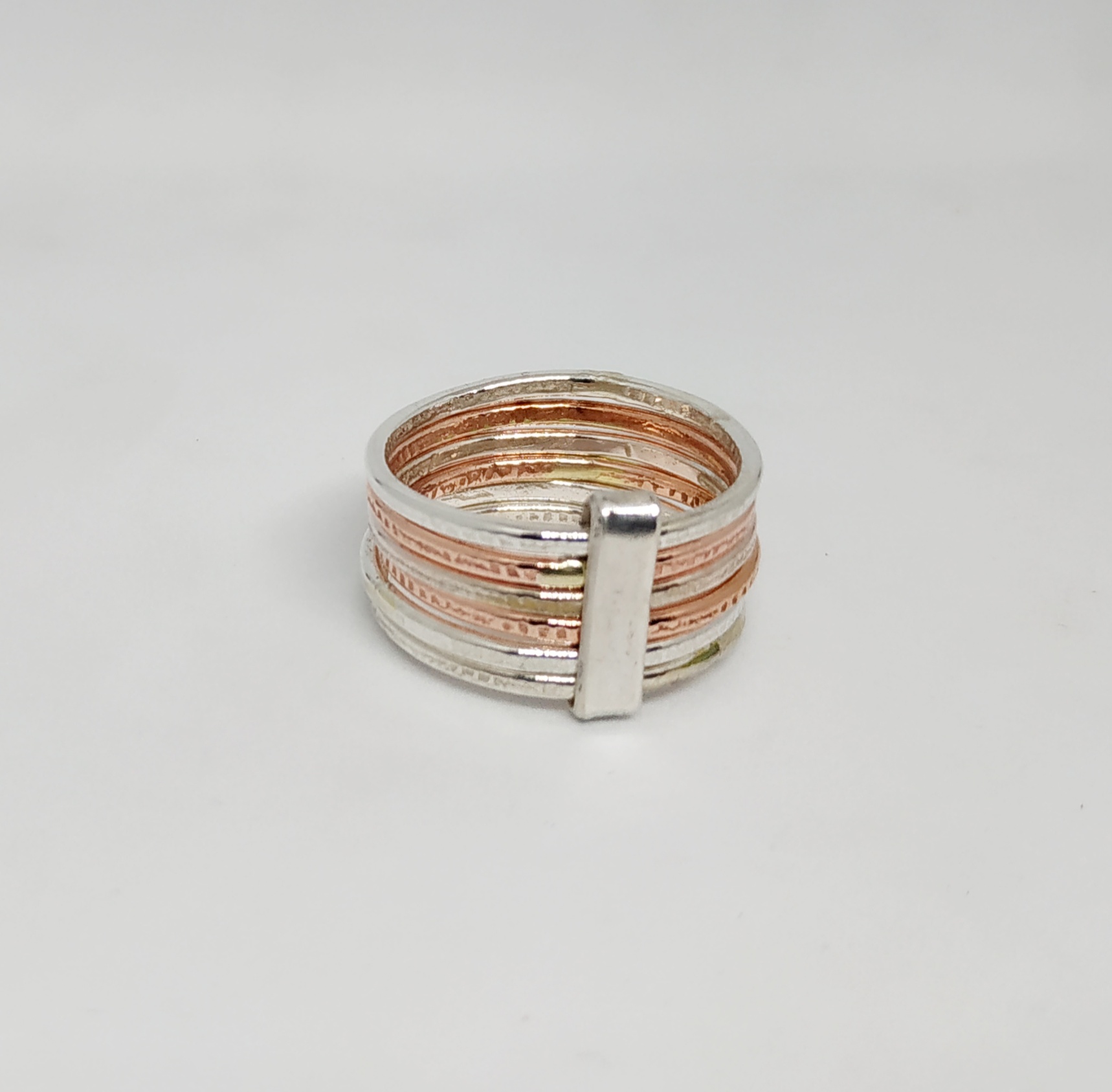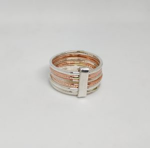 טבעת משולבת עשויה כסף 925 ופליז. הטבעת מורכבת מ-6 טבעות.