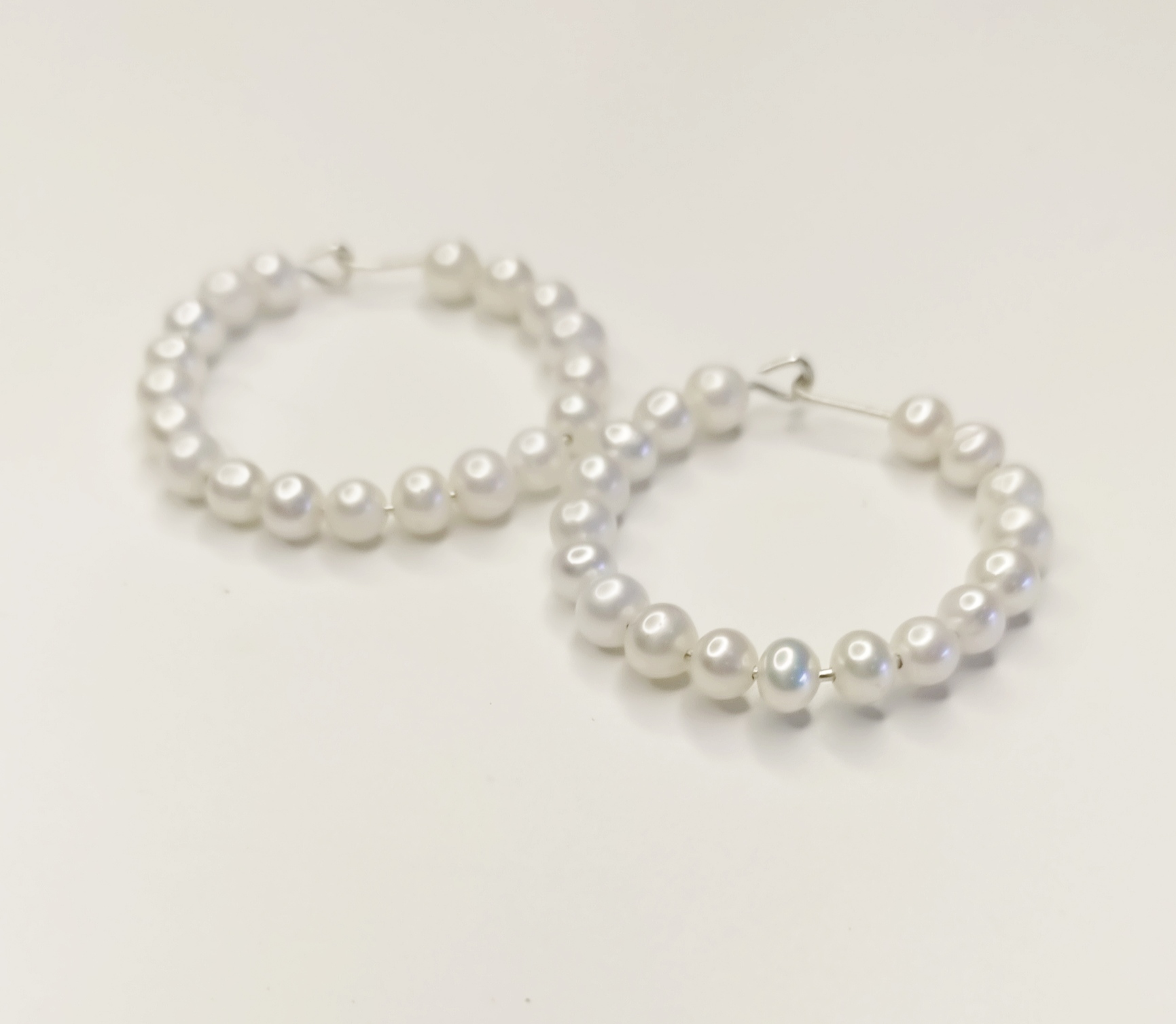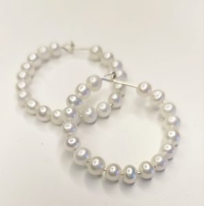 עגילי חישוק שזורים בפנינים. ניתן להזמין עם חישוק גולדפילד או כסף.