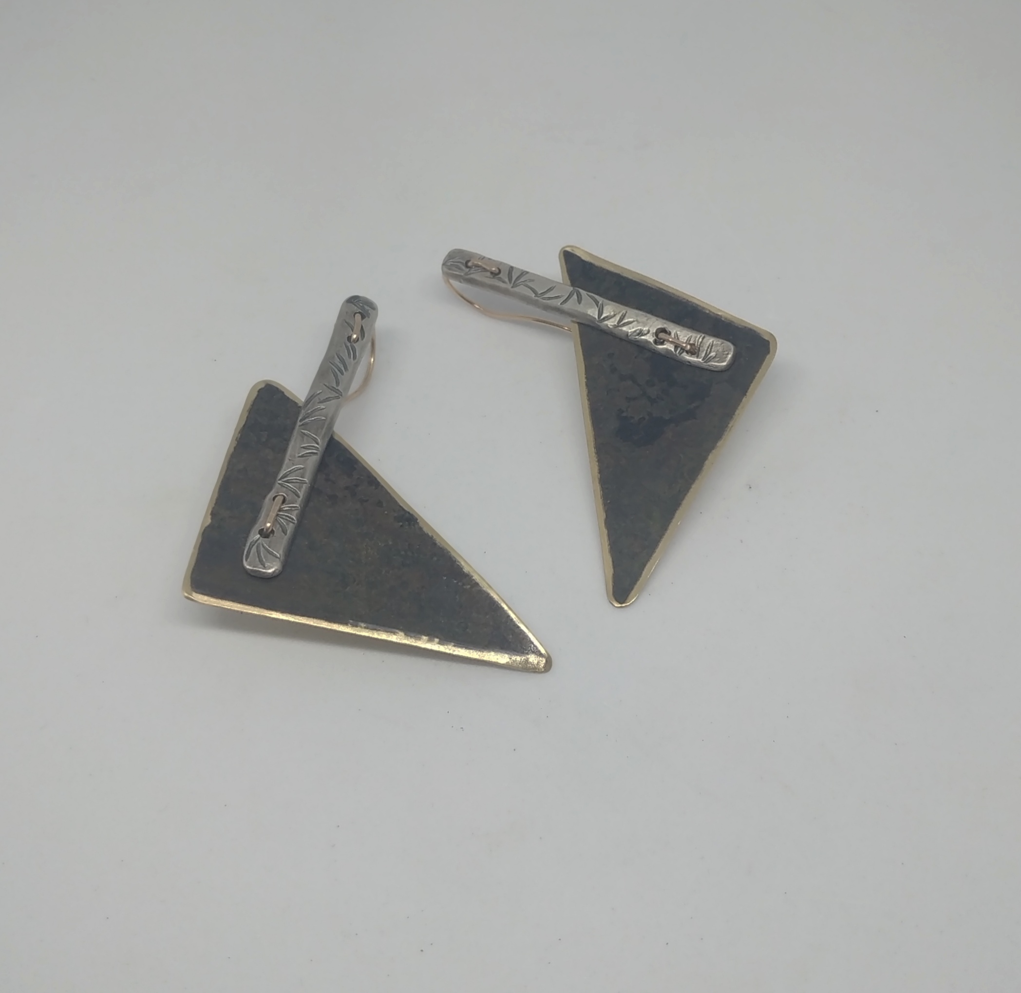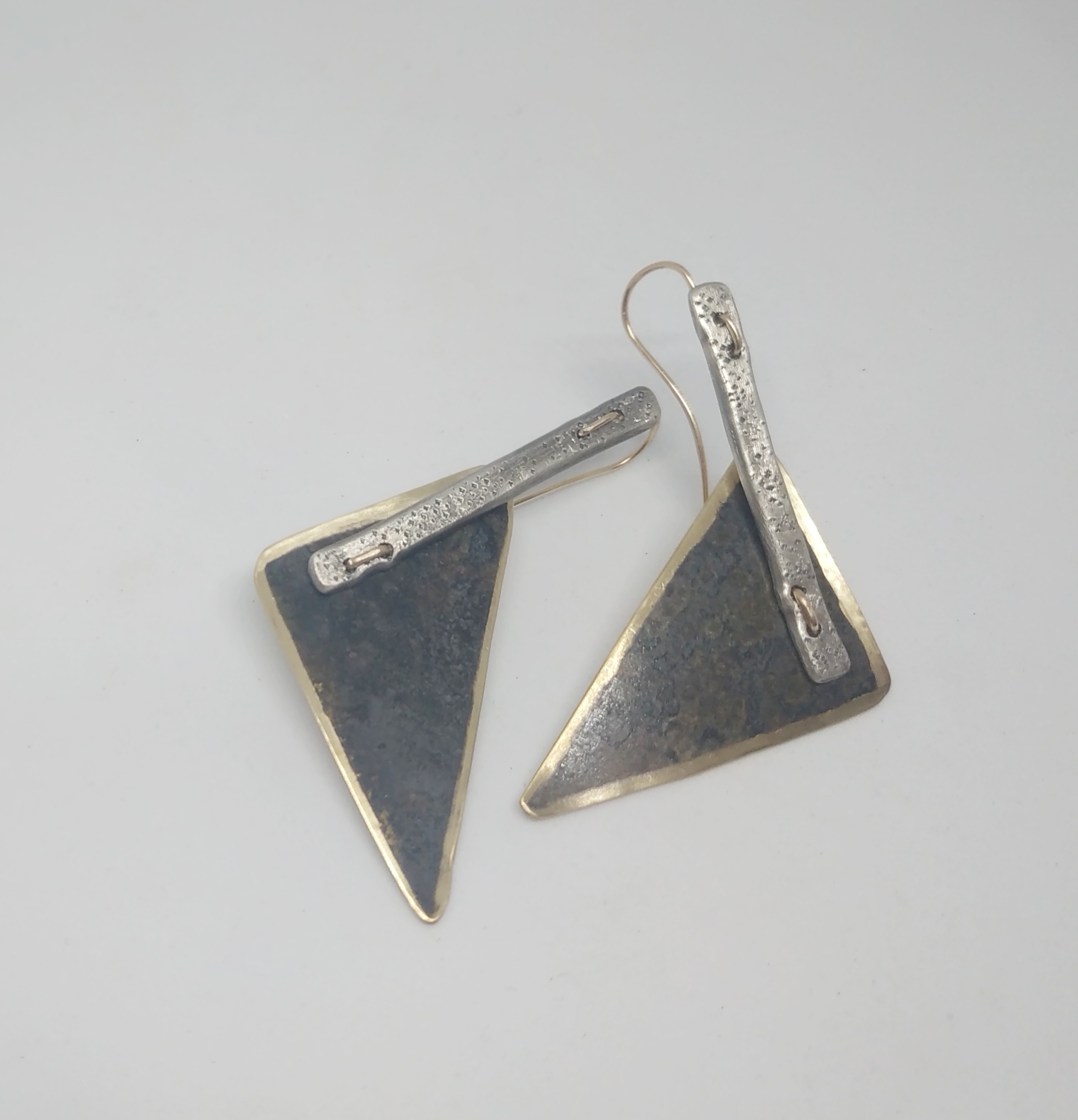 עגילים דמויי מפרש בשילוב כסף 925 ופליז מצופה פטינה שחורה עם אפקט שיש.