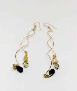 עגיל גולדפילד תלתל. בקצה העגיל תלויות אבני סוורובסקי.