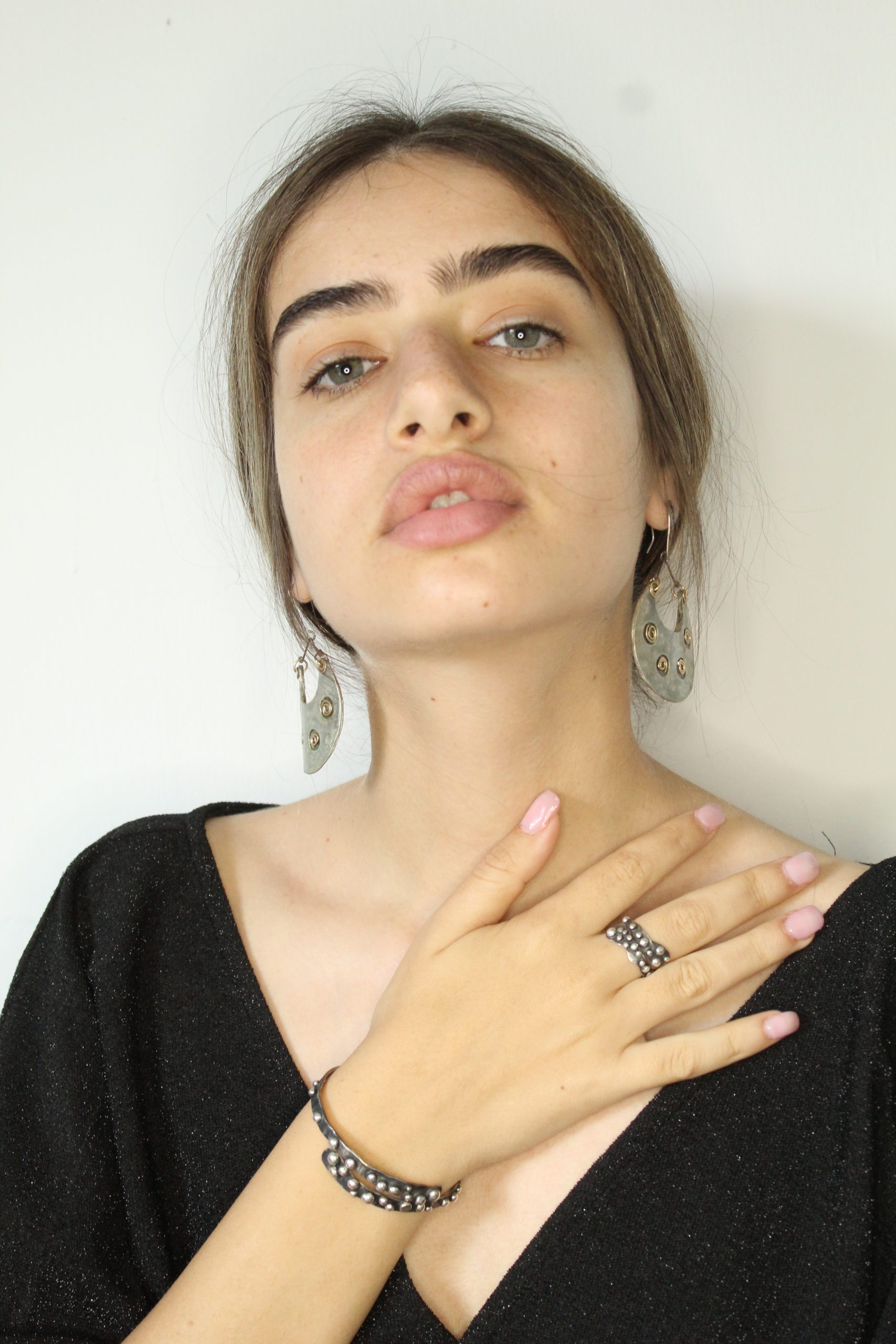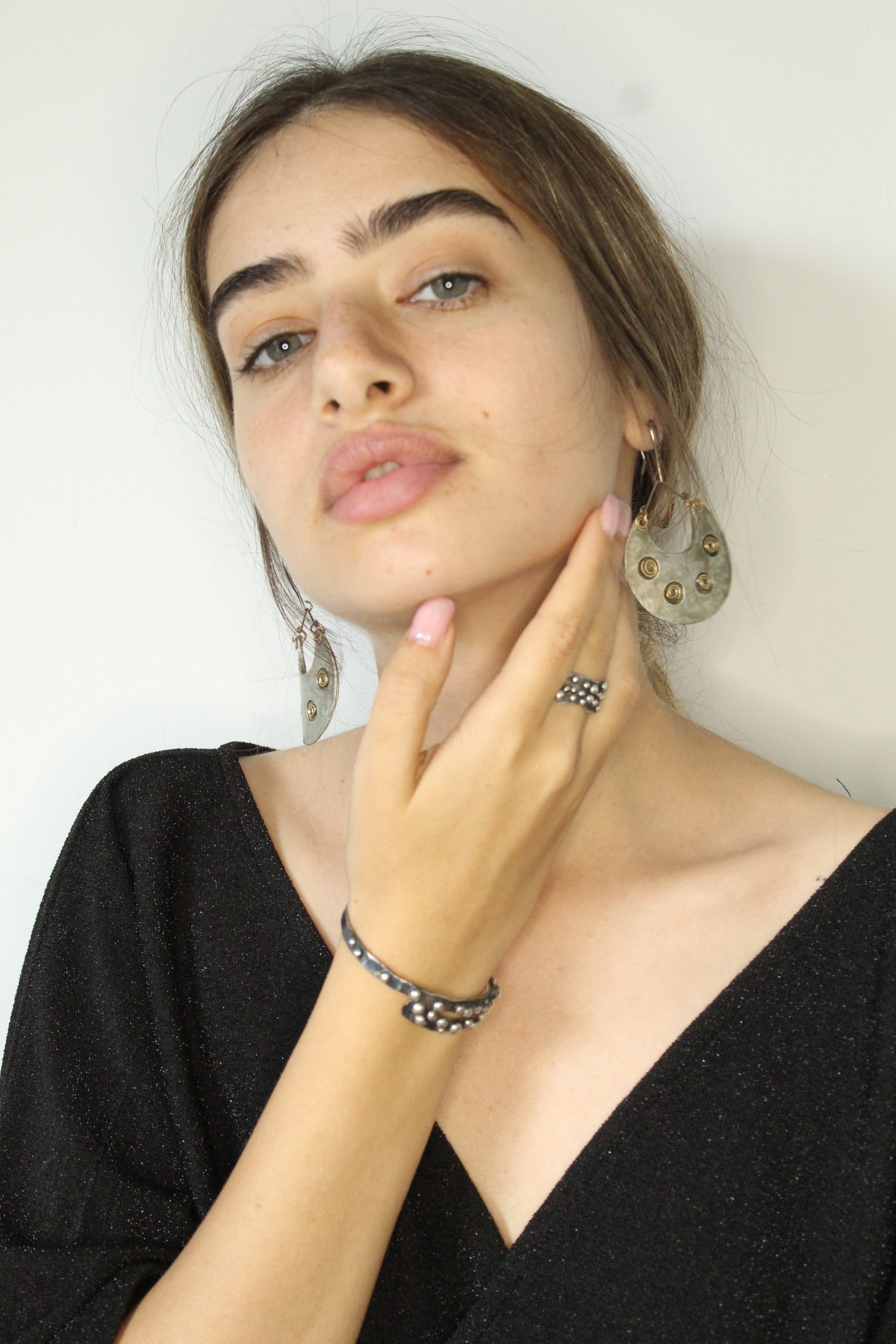 עגילים דמויי ירח, עשויים נייר בטכניקה מיוחדת.