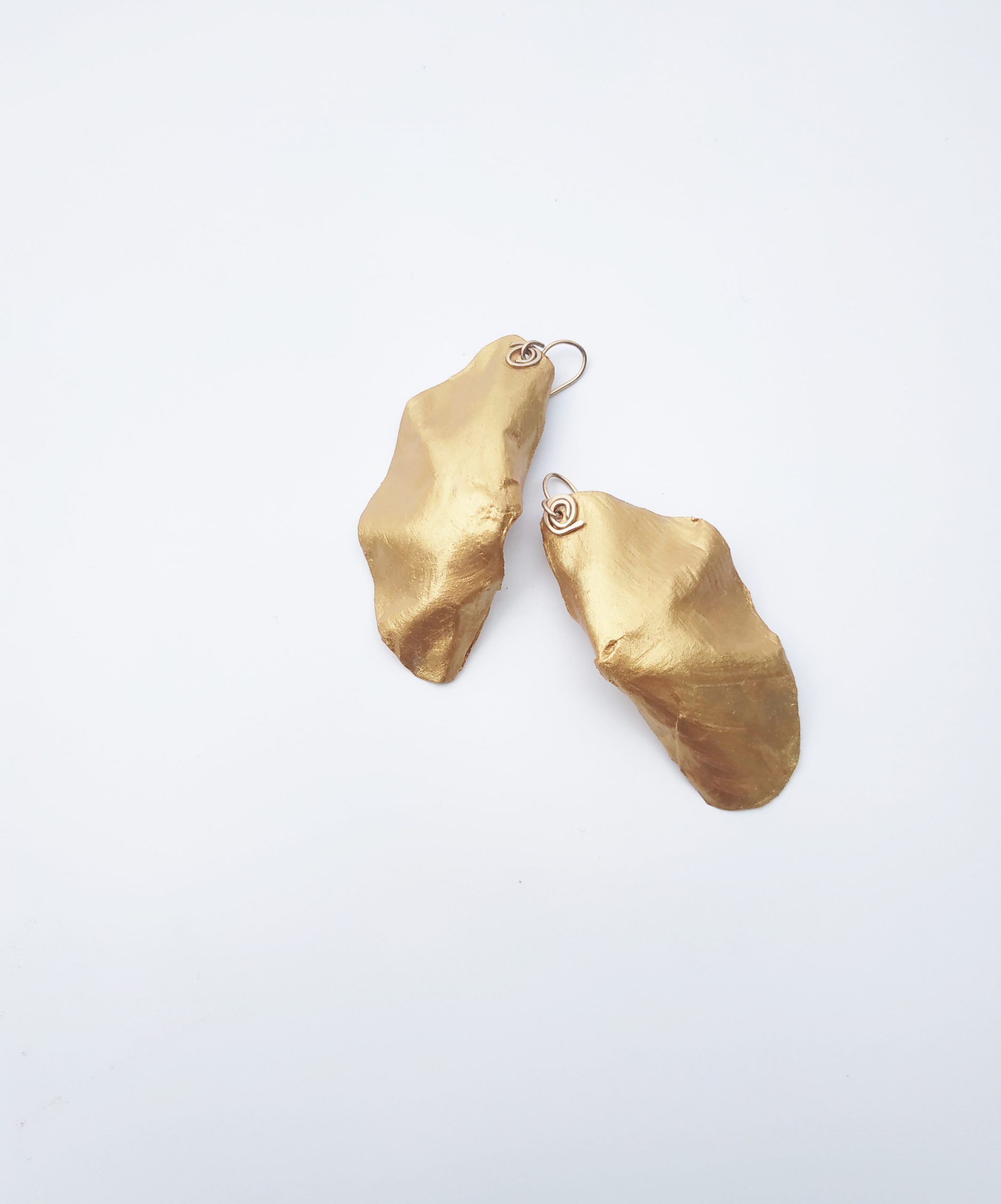 עגיל צדפה עשוי בטכנולוגיית נייר מיוחדת המקנה לתכשיט עמידות ומראה מתכתי. העגילים נוחים וקלים במיוחד.