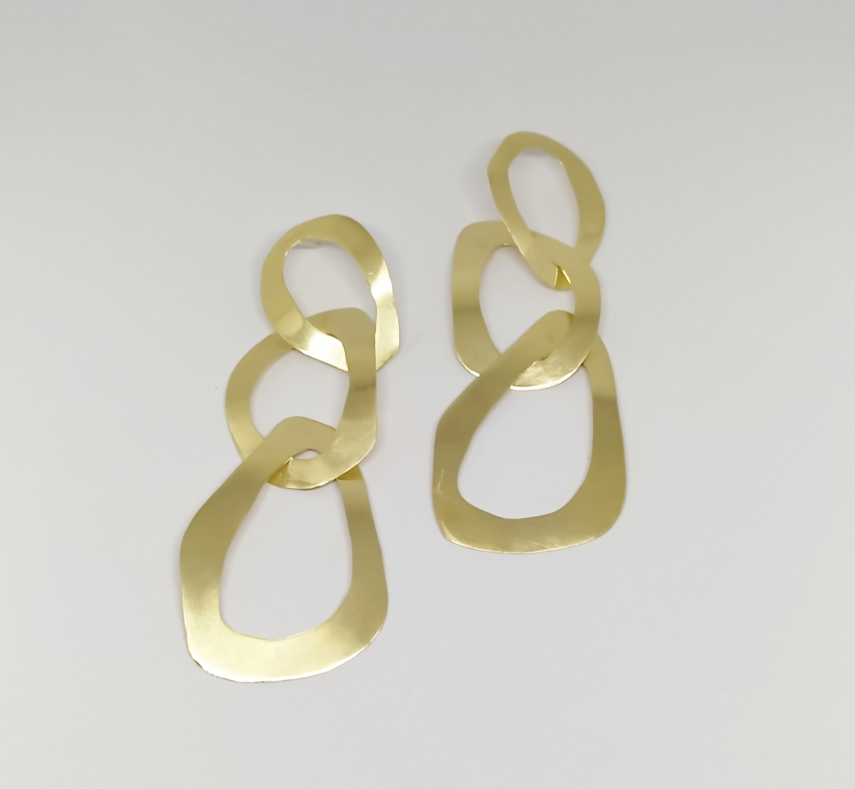עגיל שרשרת בציפוי זהב איכותי 1.5U. העגיל בנוי משלושה חישוקים השזורים כשרשרת. העגיל ענד בצמוד לאוזן.