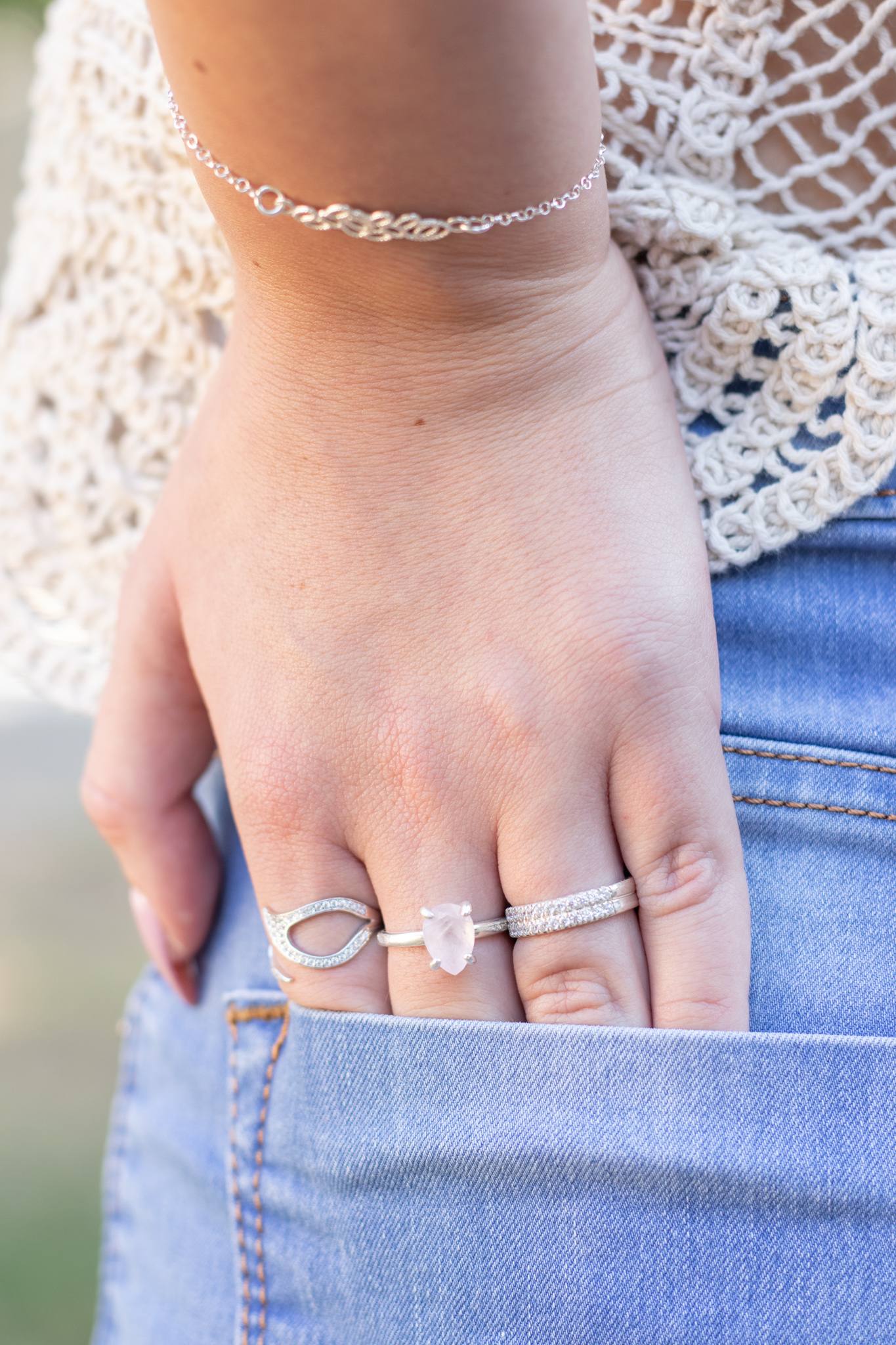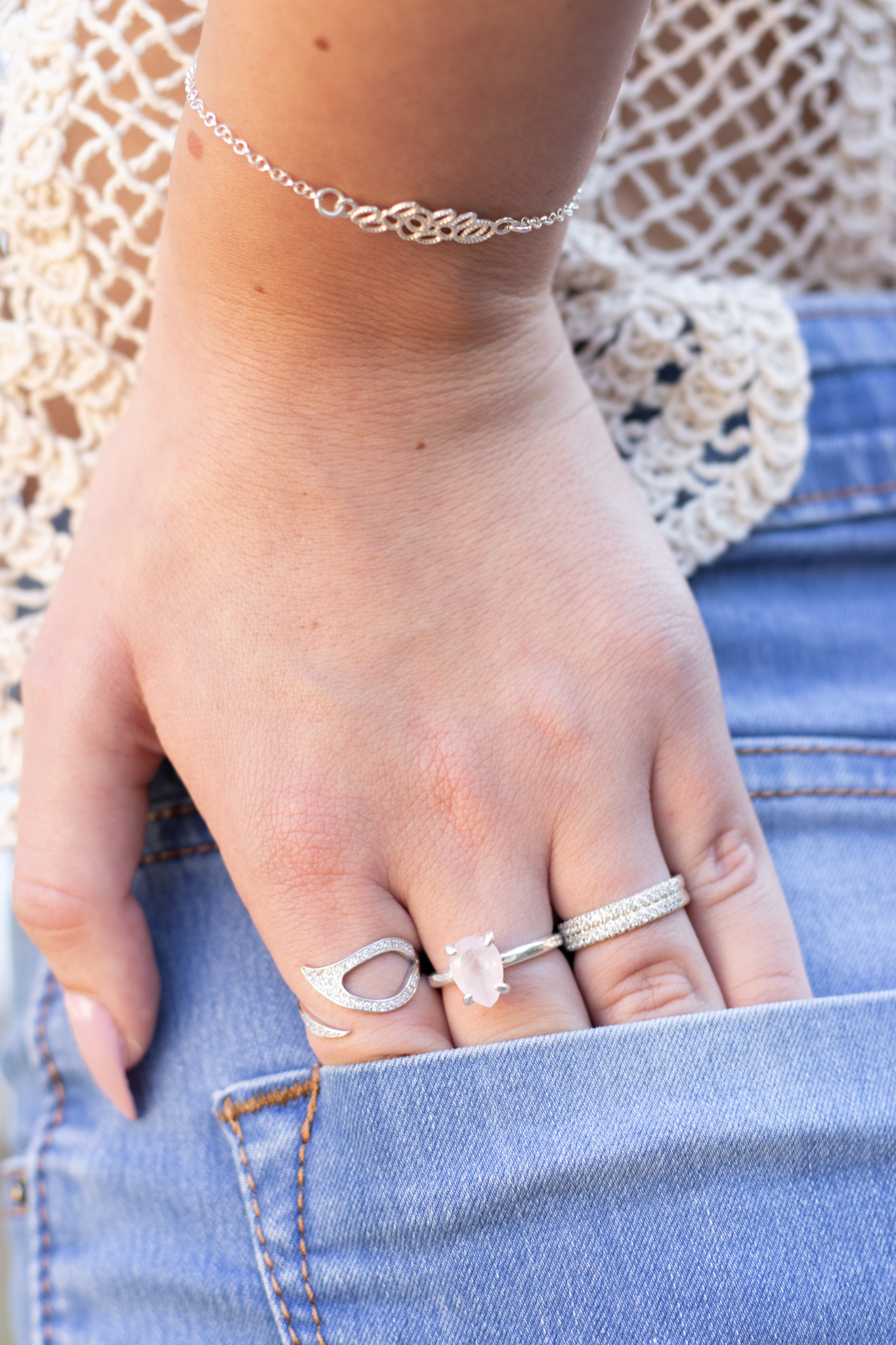 צמיד כסף 925, עם עיטור במרכז הצמיד ושרשרת הארכה.
